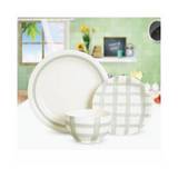 Vajilla de cerámica gris cuadros y rallas 12 Pzas. AMBIENT